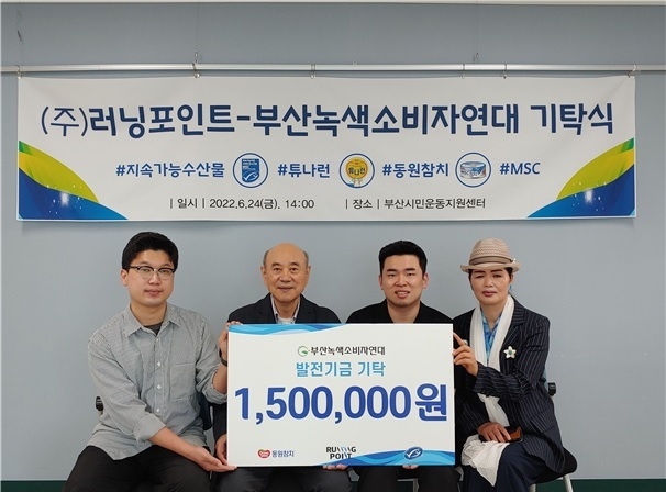 기부금 전달식은 부산시민운동지원센터에서 진행됐으며, 박태훈 러닝포인트 대표와 부산녹색소비자연대 정창식 대표가 참석했다.