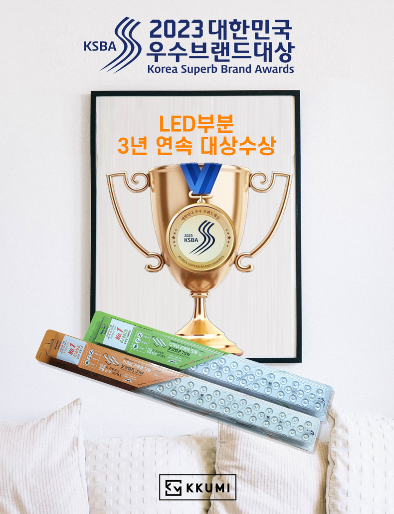 [라온신문 박은아 기자] LED 전문 제조기업 꾸미라이팅의 LED ’포밍램프’가 ‘2023년 대한민국 우수브랜드 대상’ 생활용품(LED조명) 부문에서 3년 연속 대상 수상의 영예를 안았다고 27일 밝혔다.