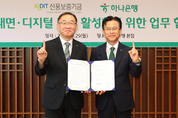 하나은행은 지난 29일 서울 을지로 본점에서 신용보증기금과 '비대면·디지털 금융 활성화를 위한 업무협약'을 체결했다고 30일 밝혔다. 양 측은 은행 방문이 어려운 중소기업과 소상공인들이 보다 쉽고 편리하게 다양한 금융 혜택을 누릴 수 있도록 상호간의 데이터 교류, 네트워크 확대 등 국내 디지털 금융 생태계를 넓혀 나갈 계획이다. 우선 하나은행은 기업 손님 대출상담 과정에서 신용보증기금의 보증 진행 여부를 빠르게 피드백 해주는 ‘신속 사전검토 시스템’을 구축한다. 이를 통해 하나은행과 신용보증기금은 중소기업이 자금 운용 계획을 신속하게 수립하고 적시에 집행 할 수 있도록 지원하는 등 생산적 금융 활성화를 공동 추진한다. 또 하나은행 인터넷뱅킹과 모바일 앱을 통해 ‘신용보증기금 연계 Easy-One 보증부 대출’ 서비스를 운영, 비대면으로 대출 신청부터 서류 제출, 전자 약정, 실행까지 원스톱(One-Stop)으로 처리할 수 있는 디지털 금융 환경을 구축할 계획이다. 이와 함께 하나은행은 금융거래 이력이 부족한 소상공인, 영세 자영업자 등에 대한 포용적 금융 확대를 위해 신용보증기금 대안평가시스템 기반의 ‘상거래 신용지수 연계 보증’을 활용한 금융 지원도 실시할