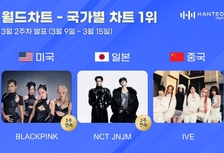 블랙핑크·NCT 제노재민·아이브, 3월 2주 한터 국가별 차트 1위